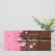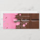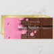 Bilhete de ouro na parte de trás e um delicioso bar de chocolate rosa e chocolate na frente. Excelente para uma festa de aniversário de tema doce.