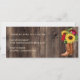 Convite para festa de aniversário de Quinceanera com botas de cowboy rústicas, girassóis amarelos brilhantes e belas rosas vermelhas sobre um fundo de madeira marrom-escura.