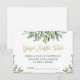 Uma maneira elegante de pedir aos convidados que tragam algumas fraldas no chá de bebê com esses bilhetes de rifa de fraldas. Folhagens simples, porém elegantes, e folhas verdes com letras douradas.
