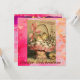 Cartão Rsvp elegante, estilo de vintagem vibrante e artístico, design floral para reagrupamento familiar Páscoa em ondas orientais cintilantes, espirais, azul, rosa, amarelo, verde, roxo, cores fuchsia e faíscas douradas. Pintura aquosa com folha de ouro e prata.