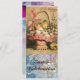 Cartão Rsvp elegante, estilo de vintagem vibrante e artístico, design floral para reagrupamento familiar Páscoa em ondas espumantes orientais, espirais azuis, verdes, lacas, cores fuchsia e faíscas douradas. Pintura aquosa com folha de ouro e prata.