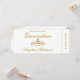 Convites Bilhete Elegante Quinceanera Dourado e Branco