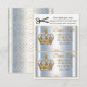 O príncipe fralda jorrada com a coroa azul-bebê e dourada em um fundo azul-bebê e dourado na frente e os pontos azuis-bebê e dourados na parte de trás. Estas passagens bonitinhas de fralda príncipe vêm impressas duas por folha. Basta cortar e colocá-los no envelope com seus convites.