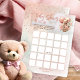Design do jogo "Bingo" de Chá de fraldas bonito apresentando um ursinho de pelúcia com uma gravata de arco rosa em uma cesta amarrada a um monte de balões cor-de-rosa e leves enfeitados com flores cor-de-rosa. Um fundo de aquarela cor-de-rosa-rosa e branco-claro com esmaecimento branco ao redor do design. A parte traseira apresenta uma repetição do mesmo plano de fundo com bolinhas cor-de-rosa de dois tons. Disponível em opções de impressão e/ou download. Design composto por Designs Holiday Hearts.