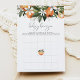 Este jogo de bingo de chá de fraldas apresenta flores laranja-aquarela e fonte de script divertida. Este convite é a adição perfeita à sua pequena cueca neutra em termos de gênero no caminho do chá.