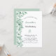 Um convite moderno e bolsa mensageifesta de aniversario elegante para uma festa de aniversário de 50 anos (ou qualquer idade). Um fundo branco chico decorado com cinzas botânicas verdes, florais verdes e folhagem. O nome é escrito com um script de estilo manchado de tendência. Texto preto e verde. Perfeito para uma festa de primavera ou de aniversário de verão para homens, caras e mulheres. Verso: cor verde do fundo.