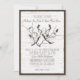 O convite para o casamento com cervos de pássaros rústicos, com latido de pássaros rústicos, e texto marrom rico.