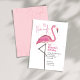 Este design apresenta um convite de aniversário, com aquarela, rosa, tropical, design com tipografia simples e flamingo bravo, com vamos com tipografia extrínseca, praia excelente ou convite de festas de verão