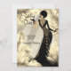 Convites Birthday Party Cream Gold Black Dress Feathers