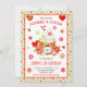 Este convite bonito e festivo apresenta uma taça de bolinhas marrom com um adorável urso polar. Enche-se de chocolate quente de cacau, creme chicoteado e salsichas. Além disso, são biscoitos de gengibre em forma de estrela e flocos de neve, espirais doces e bagas sagradas. O texto combina fontes em negrito e sans serif para uma aparência na moda e moderna. Isto é perfeito para uma festa de aniversário temática de Natal.