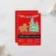 Uma ilustração adorável e fofa de dois biscoitos de pão-de-gengibre que se encontram ao lado de árvores de abóbora cobertas de neve amarradas com luzes coloridas por baixo de um fio festivo de cordas de luzes brilhantes