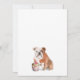 Um convite de aniversário de cachorrinho com cães brancos em chapéus de festa. Pontos festivos no verso do convite contra um fundo castanho. Tema de biscoitos e bolos de cachorrinho.