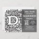 This special formal wedding design features black and white line art with a bold monogram "D" surrounded by tattoo flowers. If you're not marrying into a "D" family this background is available in many other monogram initials. Announce your special day with this easy to update template. Simply fill out the bride and groom's names, date, time, location of party and any RSVP notes or other information about parking or where the reception details can be found. Encourage guests to color in their invitation before the big day as a return gift for their presence.
