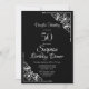 Um convite jantado Surprise 50º aniversário preto-e-branco que apresenta cantos diagonais de local de ornamentado para enquadrar o texto branco.
