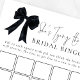 Black Bow Bingo Bridal Shower Game Card.. Available digitally or printed. She’s tying the knot is in a stylish set script and the rest of the text you can easily personalise.