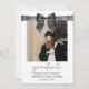 Celebrate a remarkable academic achievement with this elegant Black Bow Law University Graduation Party Invitation. Featuring a chic black bow accent and a clean, modern layout, this design blends sophistication with a subtle feminine touch. Perfect for honoring a law school or university graduate, the timeless black-and-white style makes it ideal for formal or semi-formal graduation celebrations. Easily personalize with the graduate’s name, class year, and party details for a polished and memorable invitation.
