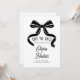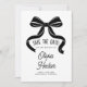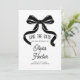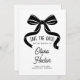 This save the date card features a bold black bow illustration that adds a simple, elegant touch to a modern wedding announcement. The clean white background and flowing ribbon artwork create a classic look that works beautifully for black tie or contemporary wedding styles. The text is easy to personalize, and you can also change the bow color to coordinate with your palette. Pair this card with matching items in the suite for a cohesive bow themed wedding look from start to finish.