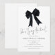 Black Bow She is Tying The Knot Bridal Shower. Available digitally and printed. The main header is in an elegant set script. The rest of the text you can easily personalise. With an elegant coquette Bow in classic black.