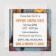 Halloween pumpkin carving party invitations. Cute black cat in witch hat napping next to a pumpkin on the front porch.