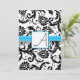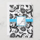 Convites Black Damask Swirls Bright Aqua Raed Trim