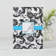 Convites Black Damask Swirts Light Bright Aqua Trim