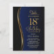 Convide seus amigos e entes queridos com este moderno convite de aniversário 18, preto, ouro e azul surpresa. A área de texto personalizável neste modelo de convite permite que você inclua facilmente todos os detalhes necessários para sua celebração especial de aniversário, incluindo as informações de data, hora, local e RSVP. Uma variedade de tipos de papel e estilos de canto estão disponíveis para seus convites exclusivos, juntamente com a opção de download se você preferir um formato digital.
