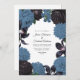 Convites Black & Dusty Blue Photo/QR Code Floral Wedding