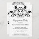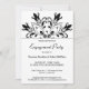Convite para festa de noivado de mandala floral branca e preto elegante.