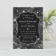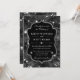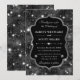 A striking black‑and‑silver mosaic backdrop glitters with starburst highlights, creating a sense of sophisticated sparkle. At the centre sits an ornate, scalloped frame edged in a fine white border, pairing elegant script accents with clean serif type for a polished, timeless look. The mood is glamorous, chic and evening‑ready—perfect for black‑tie celebrations, modern weddings, receptions and milestone events where a touch of luxe shine sets the tone.