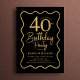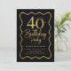 Black gold 40th birthday party invitation. Trendy modern design, perfect for a stylish men's or women's bday celebration. Features wavy border and script font. Customize with your own details. Message me if you need custom age. Printed Zazzle invitations or instant download digital printable template.