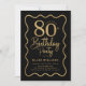 Convites Black Gold 80th Birthday Wavy Border