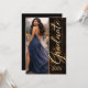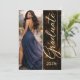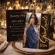 Black and gold graduation design featuring a glowing dust backdrop, flowing script name display, and refined layout. Paired with a full photo front and clean event details on the back. Ideal for hosting a polished grad night with dinner, drinks, and dancing.