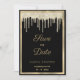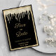 This luxury, modern, minimalist black and gold glitter drips border Wedding Save the Date Invitation is inspired by the simple and elegant, but with subtle hints of contemporary influence. It features a glam gold glitter drips border on a simple black background. This classic and luxurious design will be a big hit with all your guests. All designs are printed.