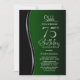 Convide seus amigos e entes queridos com este moderno convite de aniversário preto e verde surpresa 75º. A área de texto personalizável neste modelo de convite permite que você inclua facilmente todos os detalhes necessários para sua celebração especial de aniversário, incluindo as informações de data, hora, local e RSVP. Uma variedade de tipos de papel e estilos de canto estão disponíveis para seus convites exclusivos, juntamente com a opção de download se você preferir um formato digital.