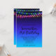 Um convite de aniversário de 21 anos contemporâneo personalizável. O fundo é um design preto, azul-indigo e azul-aqua brilhante, verde-escuro, com cordas e luzes de rua multicoloridas. Personalize o estilo ou a cor da fonte do convite para criar os convites à apresentação de propostas à noite, de terceiros. Um convite para uma noite na cidade.