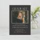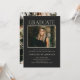 This modern graduation photo design features a black background with classic typography and a centered portrait layout. Ideal for high school or college celebrations, it pairs a senior photo on the front with a second image on the back for a polished announcement and party invite combination. The clean structure keeps event details clear while maintaining a formal, elevated feel. Personalize with name, school, and class year for a refined 2026 graduation celebration.