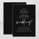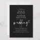 Modern Minimalist Wedding Invitation with Heart Script Detail. This wedding features a sleek black background and crisp white typography, it embraces a bold, monochrome aesthetic that's both timeless and fashion-forward. The names stand out in clean, all-caps serif type, lending a sense of refined sophistication, while the word "wedding" is written in a flowing, handwritten script — complete with a whimsical heart — adding a personal and romantic touch. This mix of structure and softness captures the effortlessly cool vibe today’s couples crave.