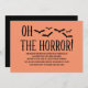 Prepare-se para uma noite terrivelmente divertida com este ousado convite para festas de Halloween, com a frase brincalhona "Oh o horror" em tipografia assustadora, cheia de morcegos voadores e talento estranho. Colocado contra um fundo laranja vibrante com design de texto preto nítido, este convite atinge o equilíbrio perfeito entre assustador e legal. Ideal para encontros com temas embutidos, festas de cocktail de Halloween ou comemorações apenas de adultos, o simples layout e a design moderna tornam fácil mostrar os detalhes do seu partido com estilo. É preciso ter para ter bons momentos.