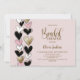 Convites Black Pink Gold Hearts Bridal Shower