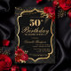 Convites Black, Red & Gold 50th Birthday Invitation