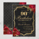 Convites Black, Red & Gold 90th Birthday Invitation