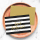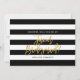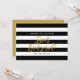 Essa chic Will You Be My Junior Bridesmaid card apresenta as palavras "Junior Bridesmaid" em uma moda de papel dourado em moda contra um fundo de listras preto e branco. A placa tem um lado de trás dourado como a cor. Veja aqui os itens de Chá de panela / Casamento correspondentes https://www.zazzle.com/collections/119250194970828530?rf=238364477188679314 Personalize este cartão substituindo o texto do espaço reservado no modelo para adicionar suas informações. Para obter mais opções, como alterar a fonte, o tamanho/cor do texto e o espaçamento entre letras, clique no botão "Personalizar". *Observe que a Marca d'água do Zazzle que aparece na visualização de zoom NÃO aparecerá no produto impresso final. © Rosewood e Citrus