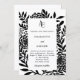 Convites Black white botanical modern monogram wedding