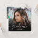Class of 2026! A simple black and white graduation invitation with a large photo front and elegant script “graduate” lettering across the image. The clean square layout keeps the focus on the portrait, while the back features two photos and classic, easy-to-read event details. It’s a timeless option that works beautifully for both high school seniors and college graduates. All text and photos are fully editable to match your celebration.