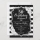 Convites Black White Stripes Silver Foto 50º Aniversário