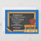Uma lousa com uma mensagem escrita com giz detalha os pormenores da aposentadoria de um professor. O convite é embelezado com livros, uma maçã vermelha e um apagador. Um doce projeto de aposentadoria para uma profissão honrosa. VOCÊ ESCOLHE A COR DO FUNDO E O ASSUNTO DOS LIVROS.