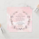 Este delicado e belo convite de casamento apresenta um fundo cor-de-água cor rosa na moda, com uma camada floral cor-de-rosa macia com acentos azuis escuros.