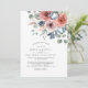 Convites elegantes e únicos para casamento com um belo buquê floral mostrando seus detalhes com flores pintadas à mão de cor aquosa e folhagem em uma combinação graciosa de blush, pêssego, rosa-pincel, marfim, azul empoeirado, azul e tons verdes de menta. Traseira de cartas em um tom azul elegante e empoeirado. Parte da nossa coleção de eventos e casamento "Blissful Floral".