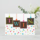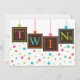 design neutro de Excelente de para quando são esperados gêmeos. Em cores brilhantes e divertidas - bolinhas cor-de-rosa, cor-de-rosa, turquesa e sotaque verde limão grandes blocos de bebês castanhos escuros que soletram TWINS na frente. Todos os detalhes do participante no verso são facilmente personalizados.