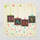 design Excelente neutro de para um rapaz ou uma rapariga em cores brilhantes e divertidas - também funciona perfeito para quando o gênero do bebê será uma surpresa. Bolinhas em blocos grandes de bebês castanhos-escuros cor-de-rosa, cor-de-rosa, cor-de-rosa, cor-de-rosa, cor-de-rosa, turquesa e sotaque verde limão que soletra BABY na frente. O design de fundo é um marfim texturizado suavemente. Todos os detalhes do participante no verso são facilmente personalizados.